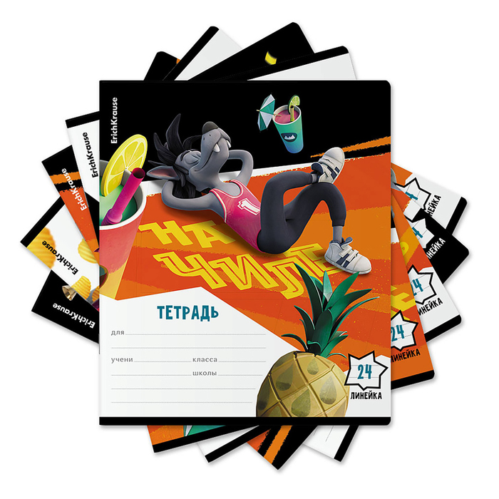 Тетрадь 24 листов в линейку ErichKrause "Ну, Погоди! Каникулы", обложка мелованный картон, блок офсет 100% белизна, МИКС, цена за 1 штуку