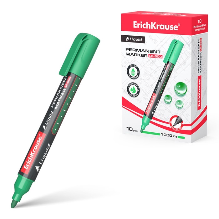 Маркер перманентный ErichKrause Liquid LP-600, 2.25 мм, жидкие чернила на спиртовой основе, зелёный