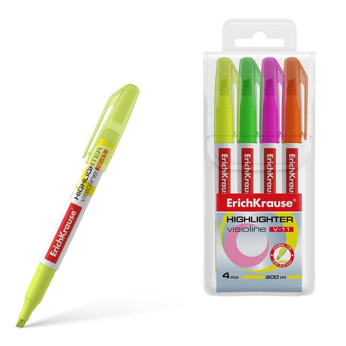 Набор маркеров текстовыделителей 4 цвета, ErichKrause Liquid Visioline V-11, 0,6-5,0 мм, чернила на водной основе