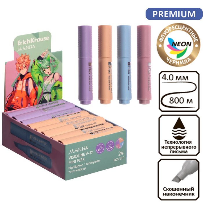 Маркер текстовыделитель ErichKrause Visioline V-17 Mini Flex Manga, 4.5 мм, чернила на водной основе, МИКС