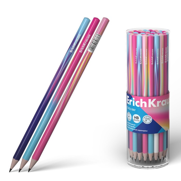 Карандаш чернографитный Erich Krause "CoolRay," HB, дерево. грифель, d = 2.2 мм, корпус круглый, металлик микс