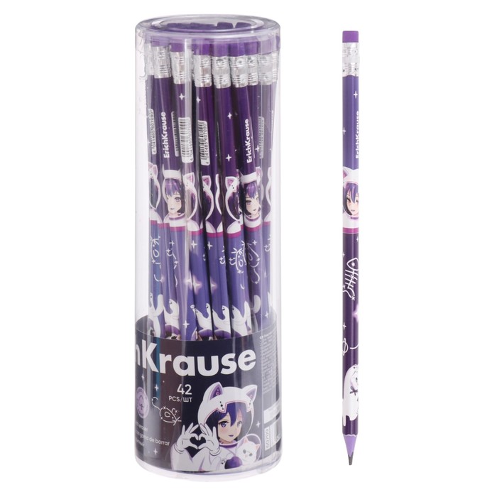 Карандаш чернографитный с ластиком ErichKrause "Space Anime", НВ, грифель d=2,2 мм, пластик, трехгранные в тубусе