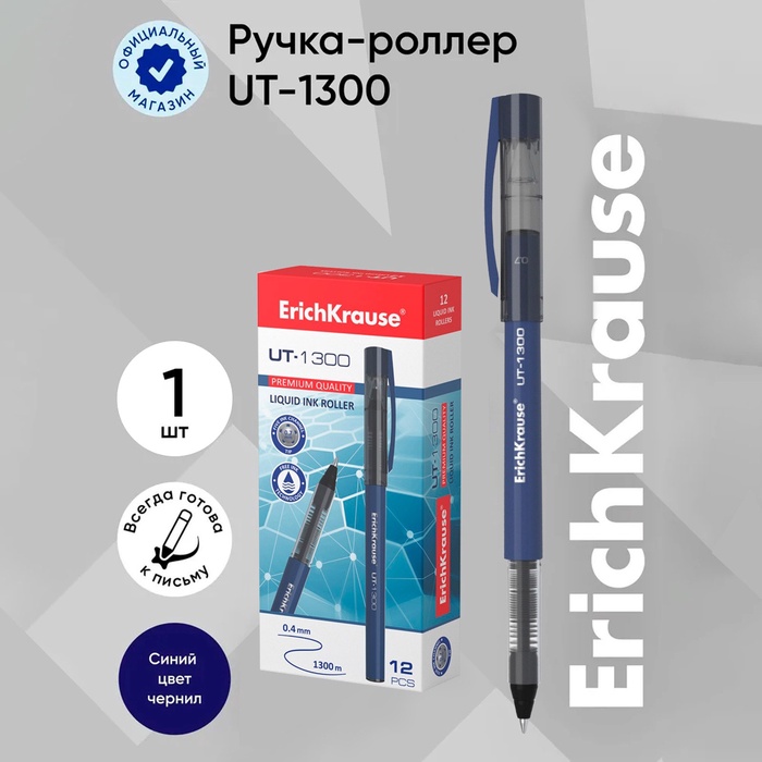 Ручка-роллер ErichKrause "UT-1300", узел 0.7 мм, чернила синие, мягкое, тонкое и чистое письмо