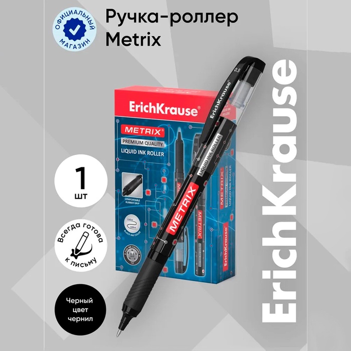 Ручка-роллер Erich Krause METRIX, узел 0.5, чернила чёрные, длина письма 1200 метров