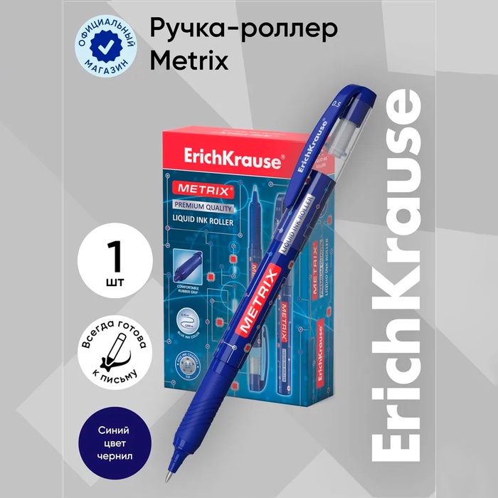 Ручка-роллер Erich Krause METRIX, узел 0.5, чернила синие, длина письма 1200 метров