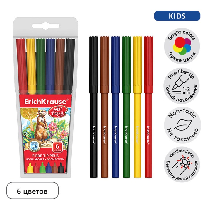 Фломастеры 6 цветов, ErichKrause ArtBerry, узел, 1-2 мм, микс