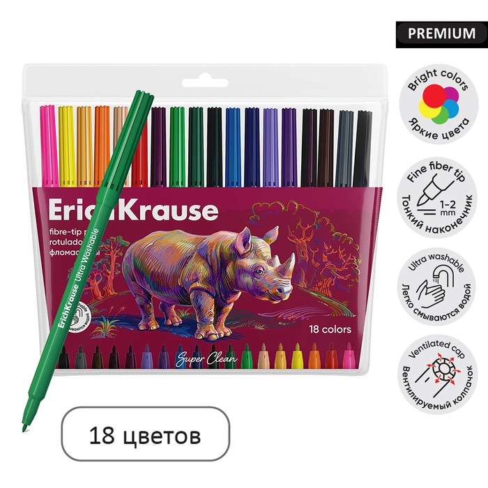 Фломастеры 18 цветов, ErichKrause, "Safari Ultra Washable" микс