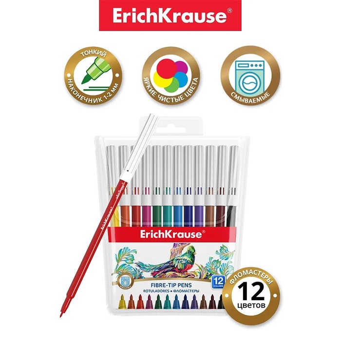 Фломастеры 12 цветов ErichKrause Washable, смываемые, европодвес