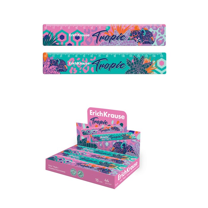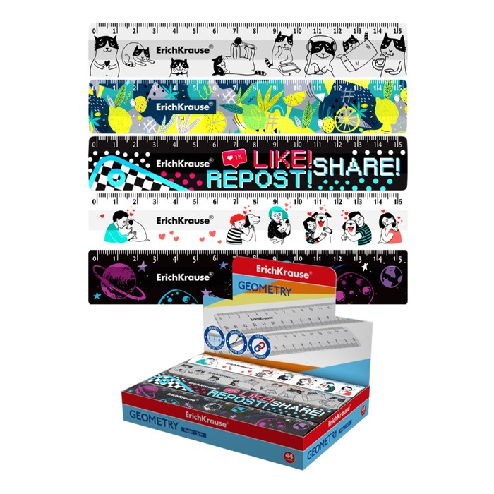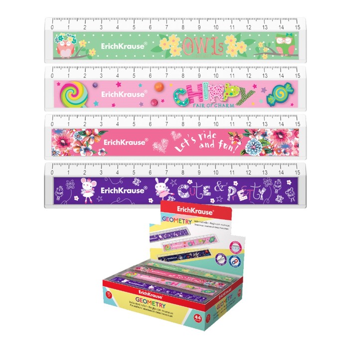 Линейка 15 см дизайн ErichKrause, микс из 5 дизайнов, в коробке-дисплее (universal)
