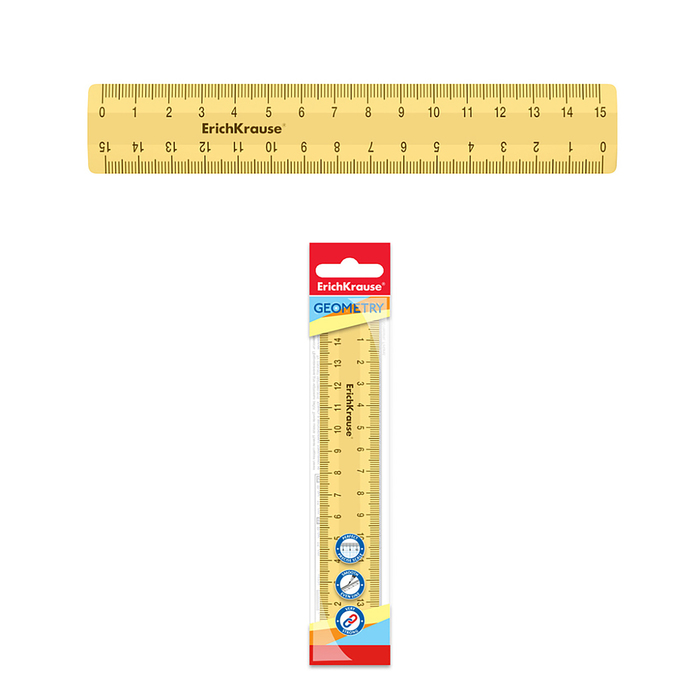 Линейка 15 см ErichKrause "Iris", пластик, двусторонняя шкала, непрозрачная, желтая, европодвес