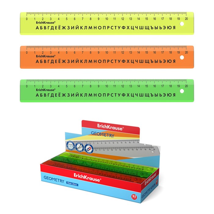 Линейка справочная 20 см Алфавит Русский ErichKrause Neon, пластик, микс из 3 цветов