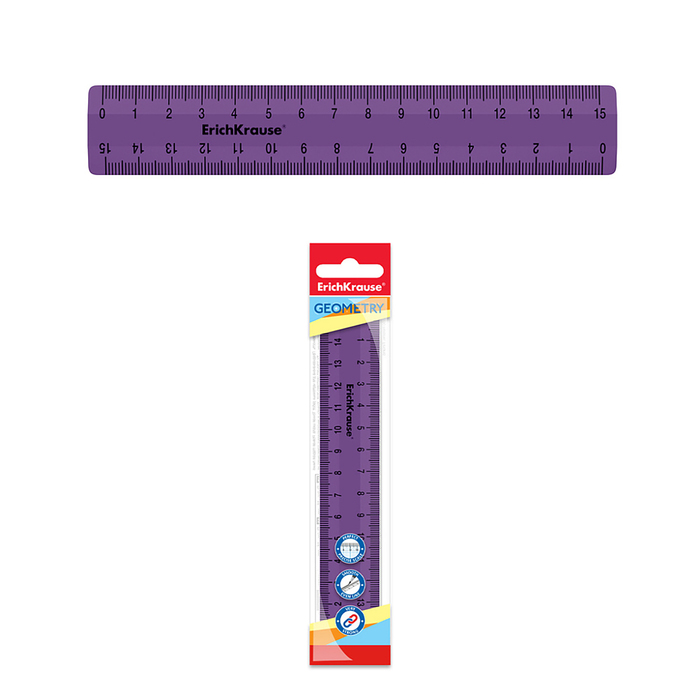 Линейка 15 см ErichKrause "Iris", пластик, двусторонняя шкала, непрозрачная, фиолетовая, европодвес