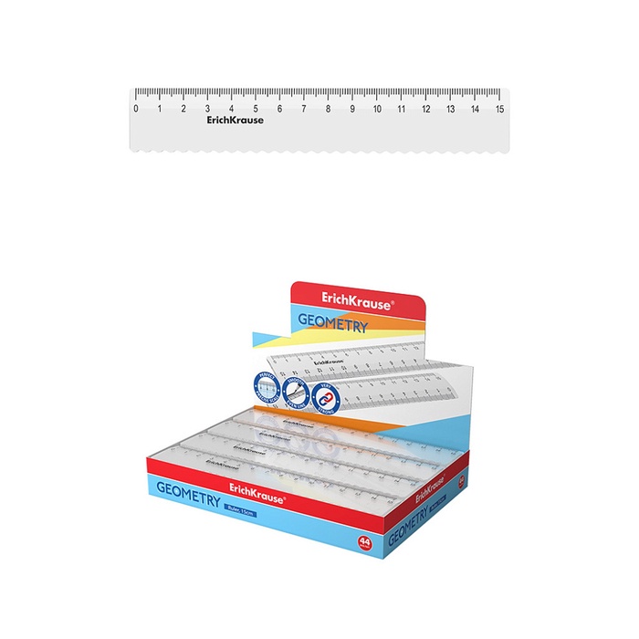 Линейка 15 см ErichKrause "Clear", пластиковая, с волнистым краем, прозрачная