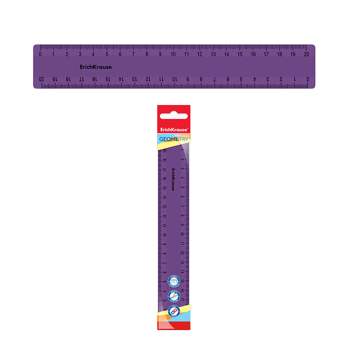Линейка 20 см ErichKrause "Iris", пластик, двусторонняя шкала, непрозрачная, фиолетовая, европодвес