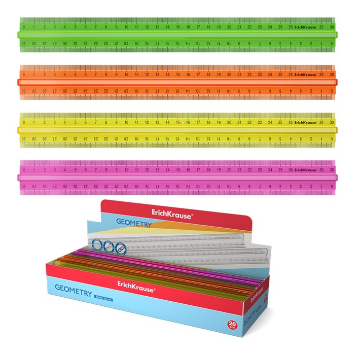 Линейка с держателем 30 см, ErichKrause Neon, пластик, в коробке-дисплее, МИКС