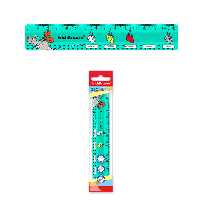Линейка 15 см ErichKrause "Working Days", пластик, непрозрачная, с рисунком, европодвес
