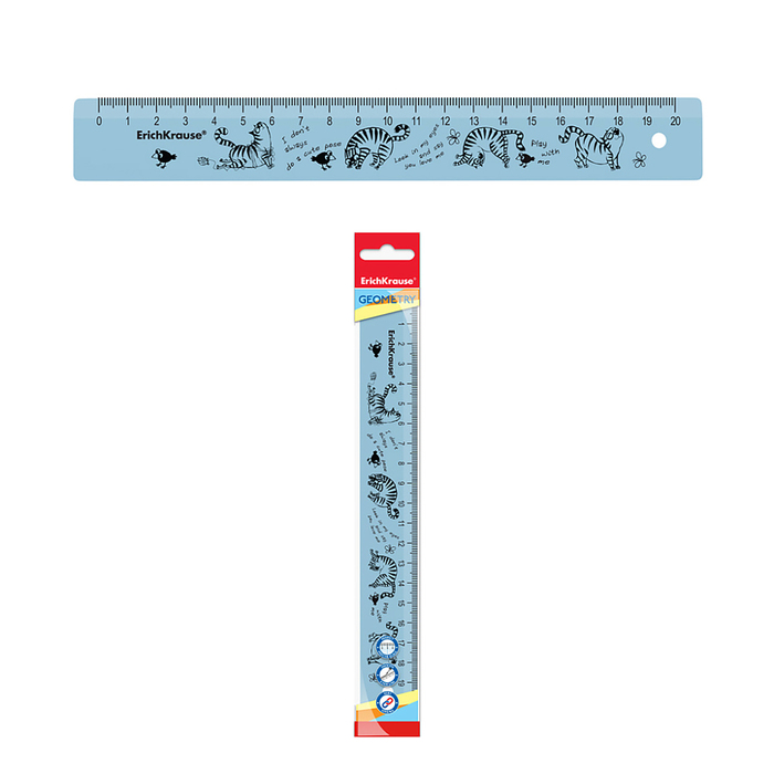 Линейка 20 см ErichKrause "Zen Cats", пластик, полупрозрачная, голубая, с рисунком, европодвес