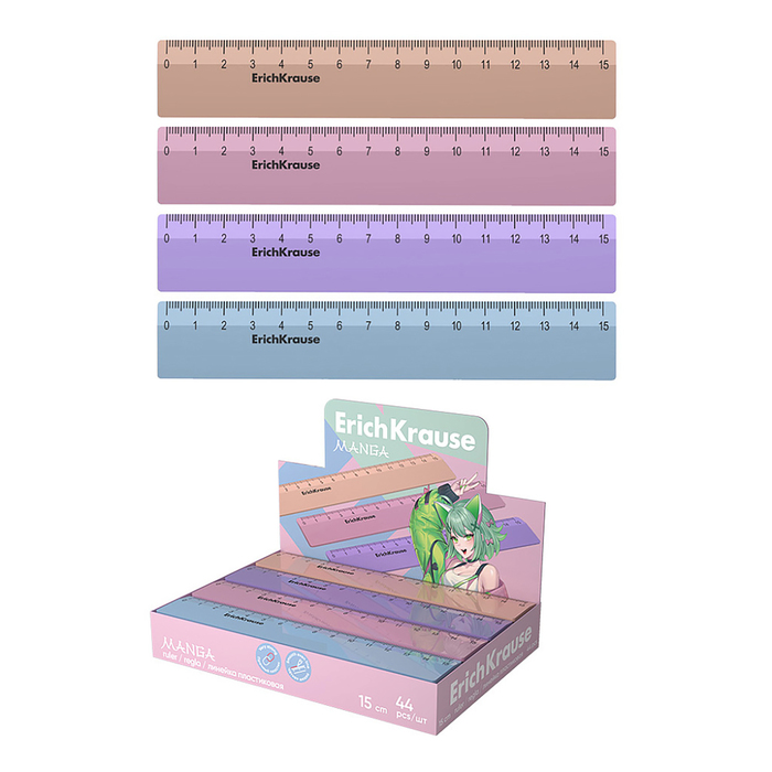 Линейка 15см ErichKrause Manga, в коробке-дисплее, микс