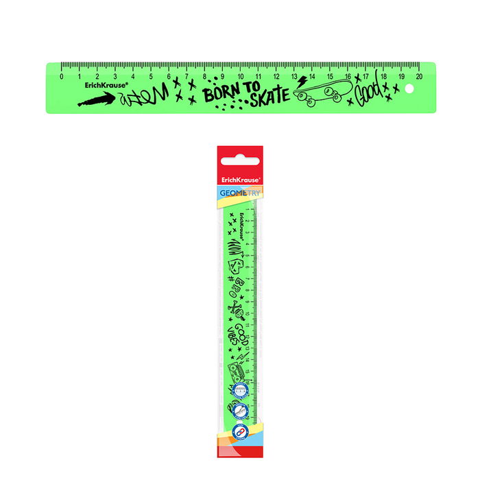 Линейка 20 см ErichKrause "Scooter Master", пластик, полупрозрачная, с рисунком, европодвес