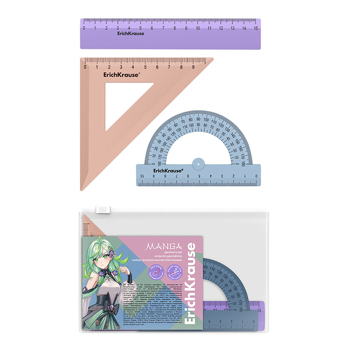 Набор геометрический ErichKrause Manga, малый (линейка, угольник, транспортир), в zip-пакете, МИКС