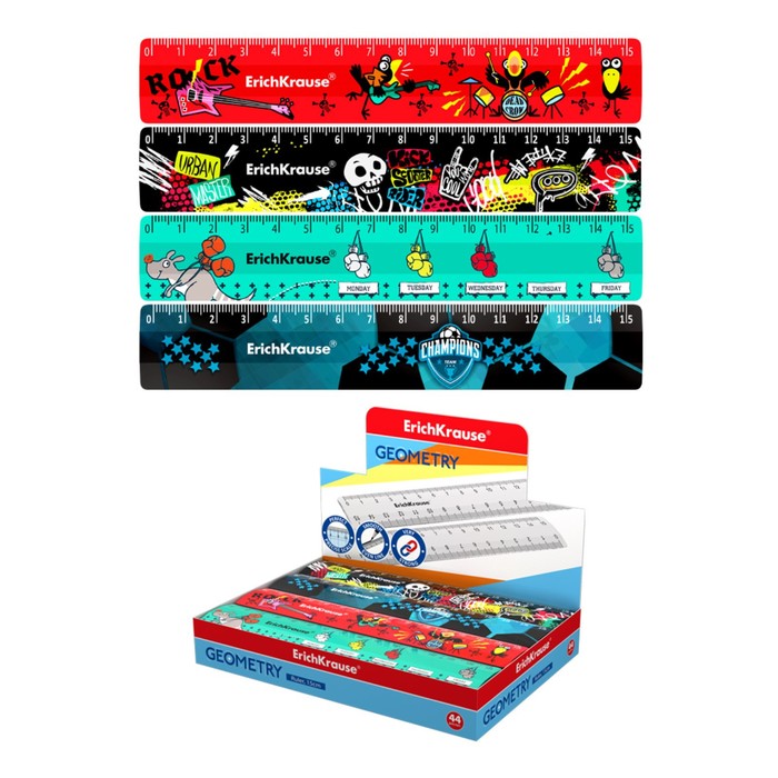 Линейка 15 см дизайн ErichKrause, микс из 4 дизайнов, в коробке-дисплее (boy)