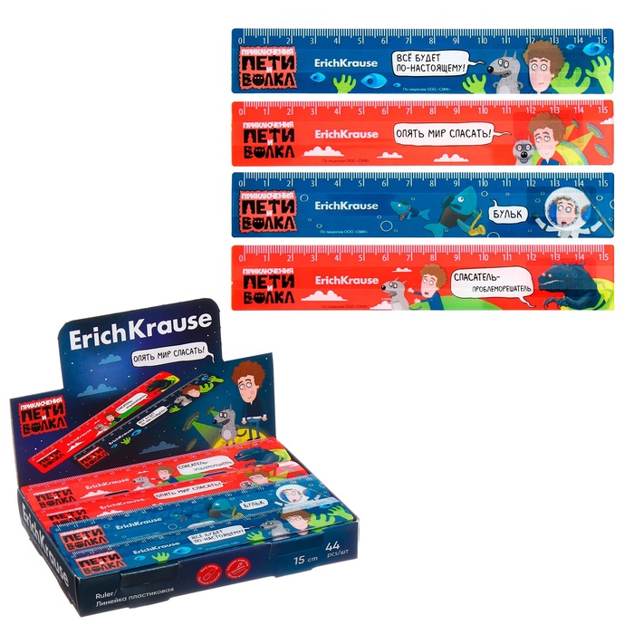 Линейка 15 см ErichKrause "Приключения Пети и Волка", микс