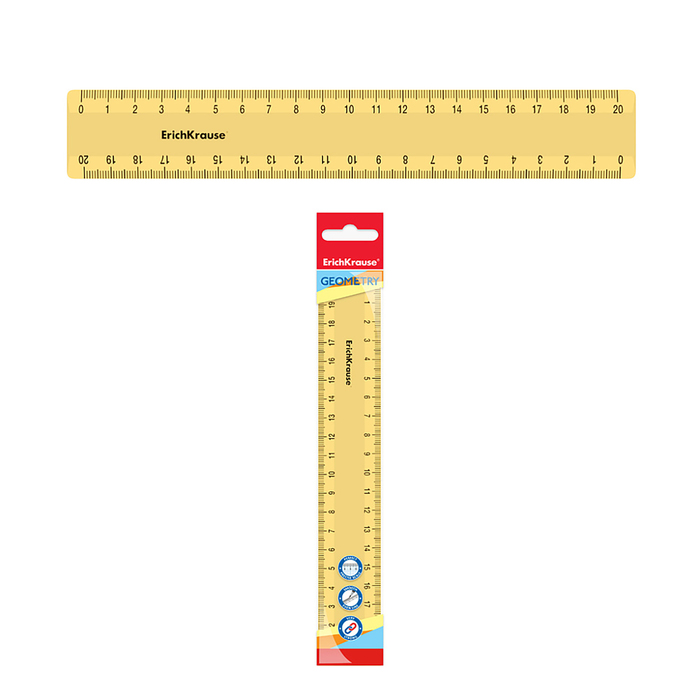 Линейка 20 см ErichKrause "Iris", пластик, двусторонняя шкала, непрозрачная, желтая, европодвес