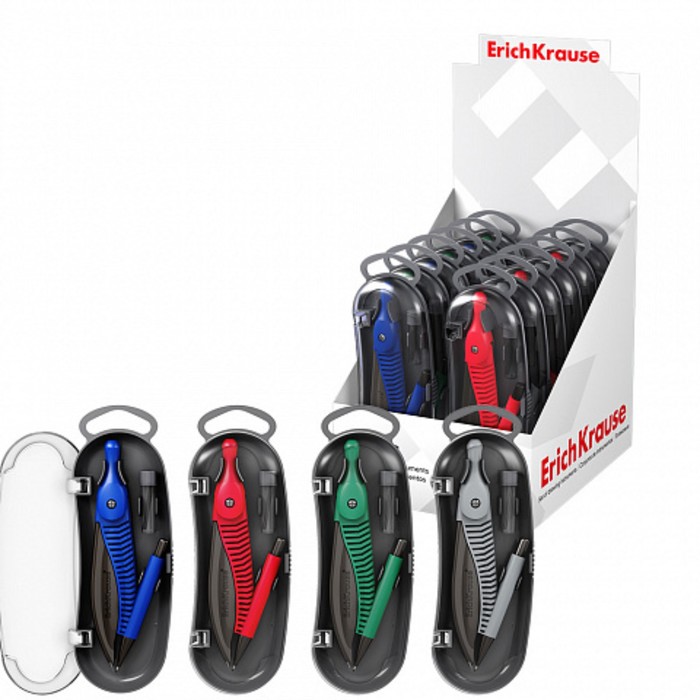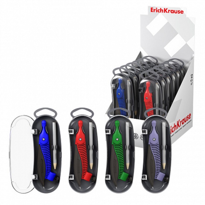 Циркуль пластиковый ErichKrause "Classic", 122мм, с карандашом, пенал, микс