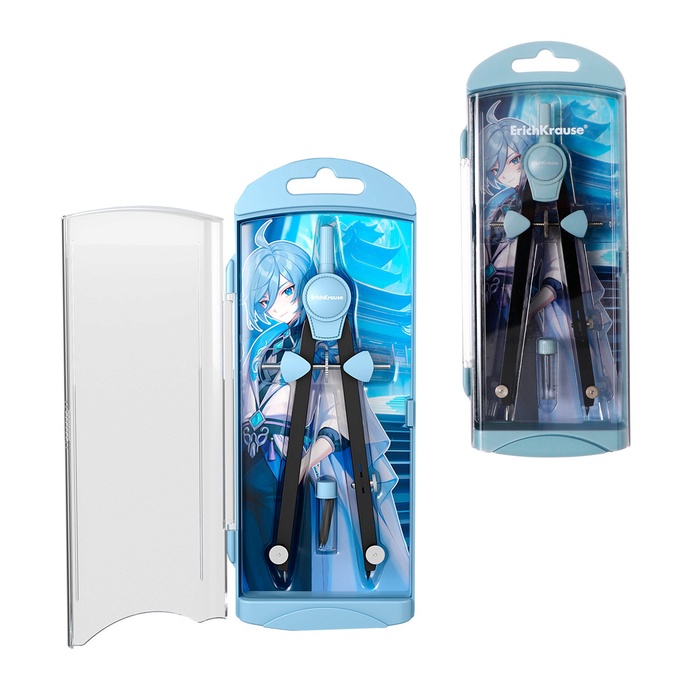 Готовальня ErichKrause "Manga", 2 предмета, пенал, голубой