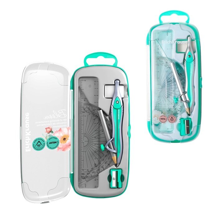 Готовальня ErichKrause "Pastel Bloom", 7 предметов, пенал, зеленый