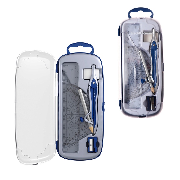 Готовальня ErichKrause "Classic", 2 предмета, пенал, синий