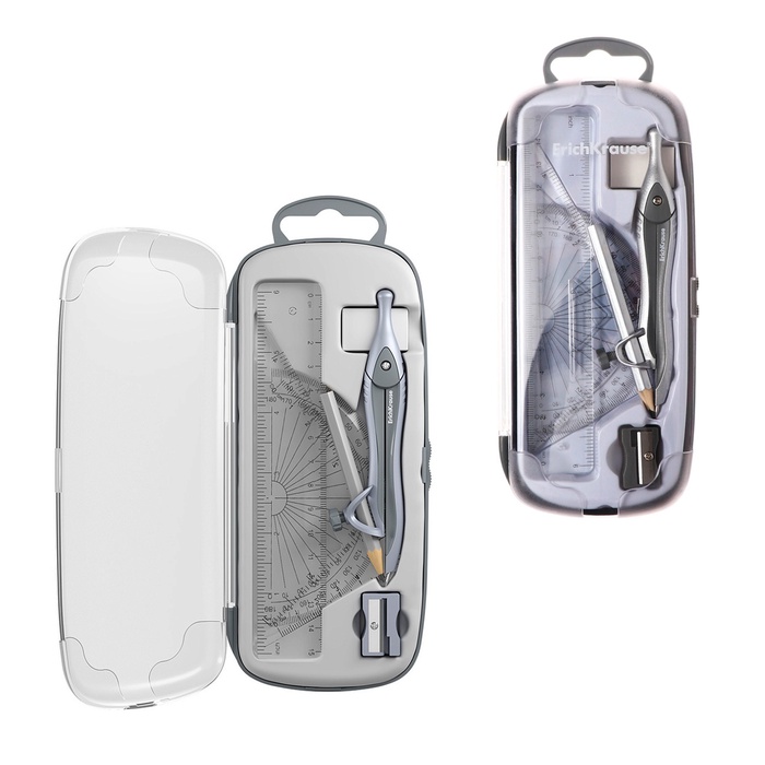 Готовальня ErichKrause "Classic", 7 предметов, пенал, серый