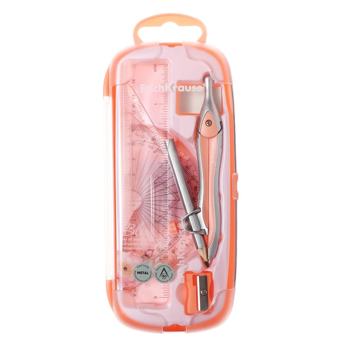 Готовальня ErichKrause "Pastel Bloom", 7 предметов, пенал, персиковый
