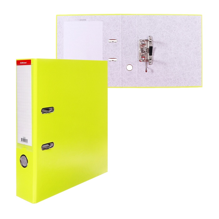 Папка-регистратор А4, 50 мм, ErichKrause Neon, собранная, карман на корешок, ламинированный картон, зеленая