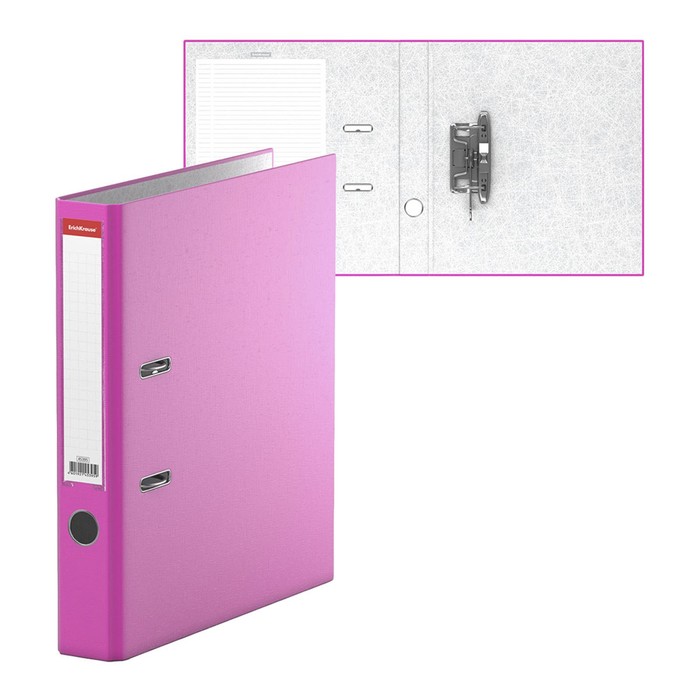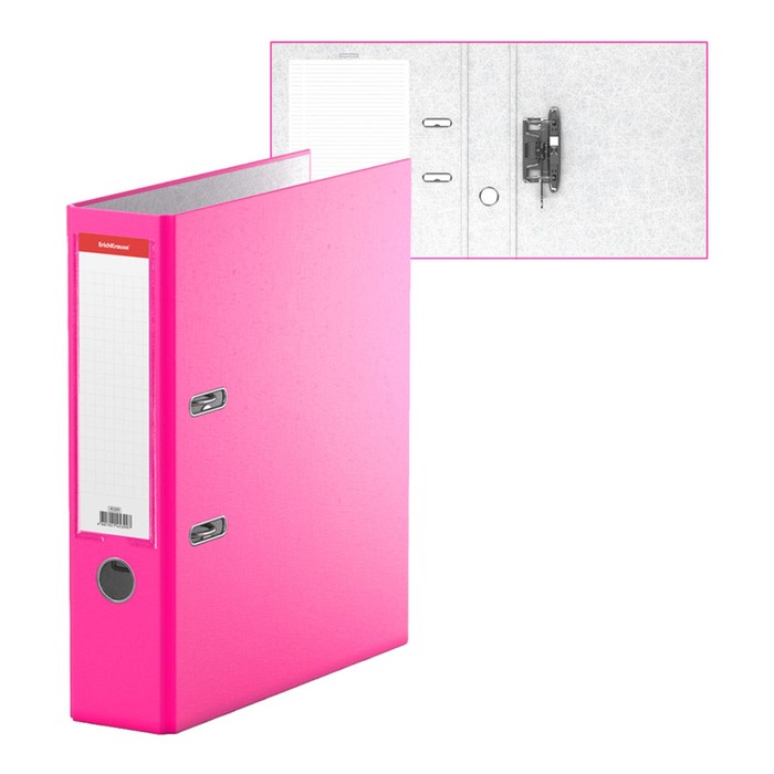 Папка-регистратор А4, 50 мм, ErichKrause Neon, собранная, розовая, пластиковый карман, вместимость 350 листов