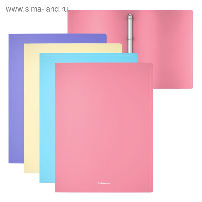 Папка на 4 кольцах А4, ErichKrause Matt Pastel, 24 мм, 600 мкм, матовая, 4 вида, микс