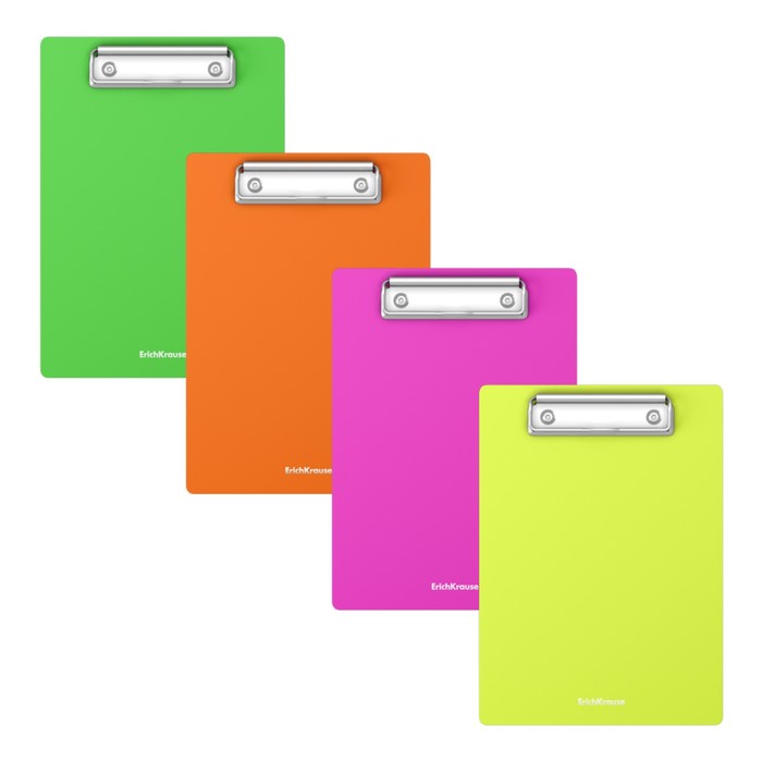 Планшет пластиковый с зажимом А4, 1.3мм, ErichKrause Matt Neon, микс