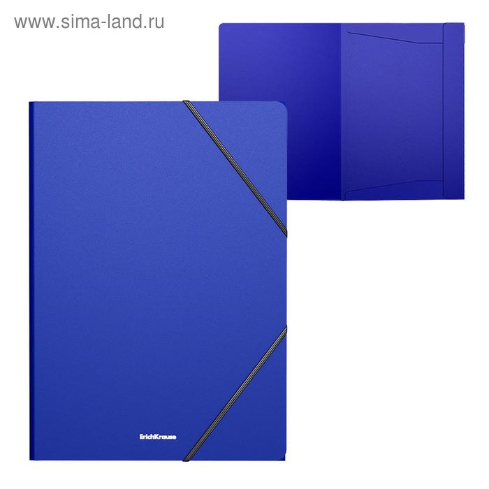 Папка на резинке A4, 400 мкм, ErichKrause Matt Classic, корешок 5 мм, до 300 листов, тиснение "песок", синяя
