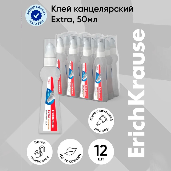 Клей-роллер канцелярский ErichKrause, 50 мл, с роликовым аппликатором, подходит для бумаги, картона и ткани, морозостойкий