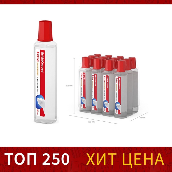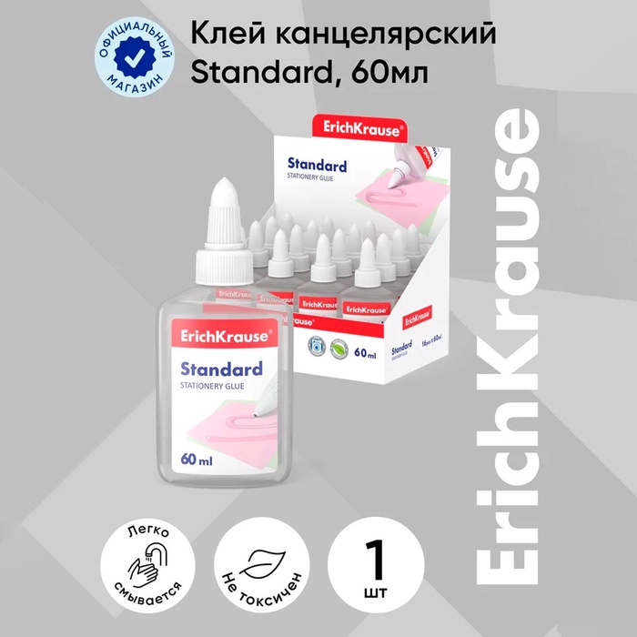 Клей канцелярский ErichKrause, 50 мл, с пластиковым аппликатором, подходит для бумаги, картона и ткани, морозостойкий