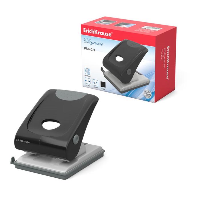 Дырокол ErichKrause Elegance, до 40 листов, диаметр прокола 5.5 мм, расстояние между проколами 80 мм, черный