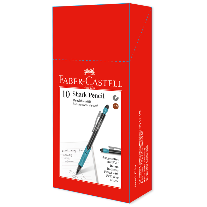 Карандаш механический Faber-Castell "Shark" 0,5мм, HB, грип, с ластиком, ассорти
