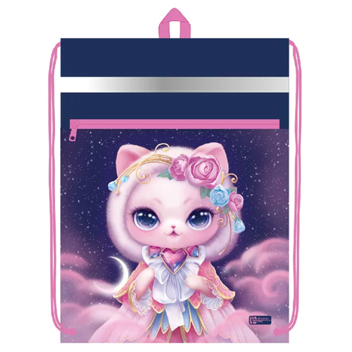 Мешок для сменной обуви " Феникс " 36*48см Кошка-принцесса, 1 отделение, карман на молнии, шнурок, ручка-петля, сублимационная печать, светоотражающая лента, полиэстер, пакет