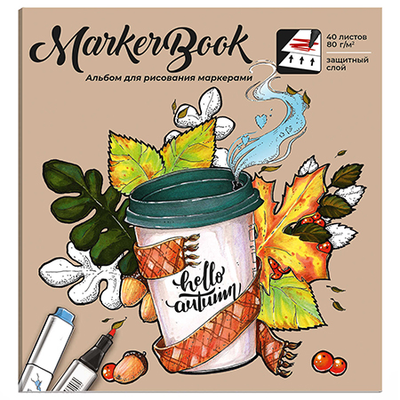 Альбом для работы маркерами " Феникс " 195*195мм 40л Уютная осень, белая маркерная бумага, плотность 80г/м2, склейка, мелованный картон