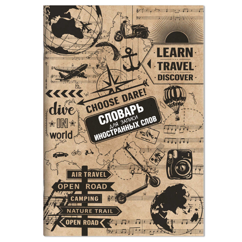 Тетрадь-словарь для записи иностранных слов МАЛЫЙ ФОРМАТ А5 24л " Феникс " Путешествие, на скобе, обложка- мелованный картон, офсет
