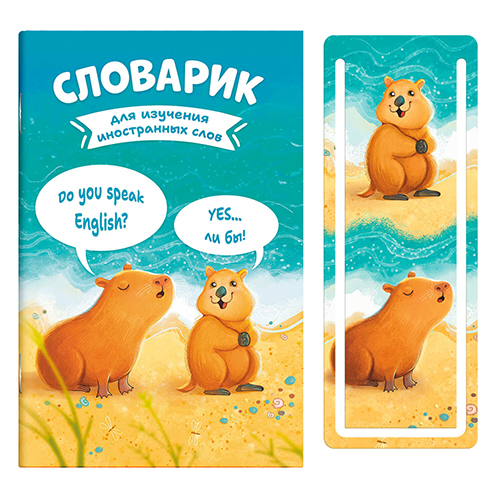 Тетрадь-словарь для записи иностранных слов МАЛЫЙ ФОРМАТ А6 32л " Феникс " Капибара и квокка, на скобе, обложка- глянцевый ламинированный картон, офсет, закладка для проверки слов, пакет
