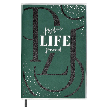 Записная книжка МАЛЫЙ ФОРМАТ А6+ интегральная 96л " Феникс " Escalada Мысли позитивно! Зеленый, линия, обложка - прозрачный ПВХ, съемная обложка, сшивка, аппликация из глиттерного полиэстера, тиснение фольгой, дизайнерский белый блок, фигурная вырубка, ля