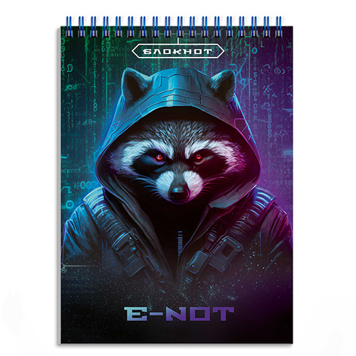Блокнот МАЛЫЙ ФОРМАТ А6 спираль сверху 80л " Феникс " Енот, клетка, обложка - мелованный картон, белый офсет, 150*100мм