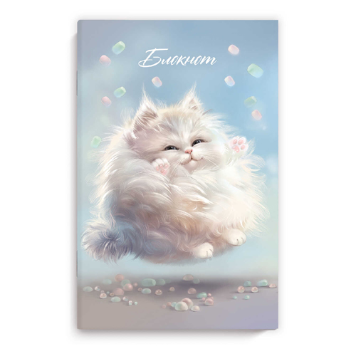 Блокнот МАЛЫЙ ФОРМАТ А6+ 40л " Феникс " Пушистый кот, в точку, на скобе, обложка - мелованный картон, покрытие софт-тач вельвет, 120*185мм