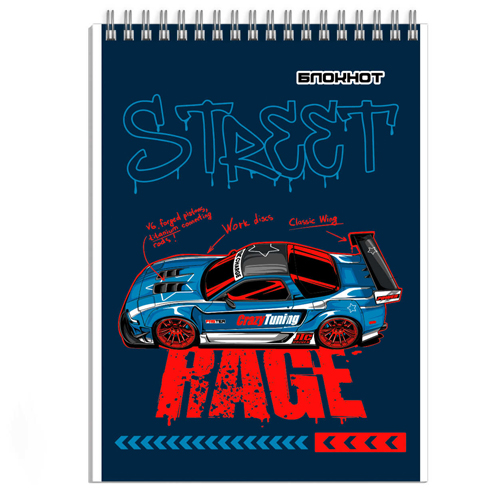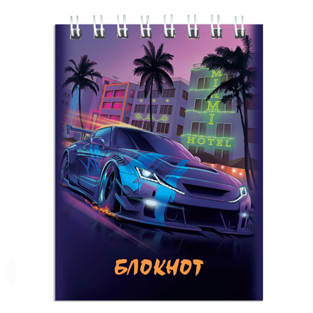 Блокнот МАЛЫЙ ФОРМАТ А7 спираль сверху 40л " Феникс " Машина, клетка, обложка - мелованный картон, сплошной УФ-лак, белый офсет